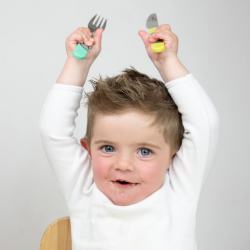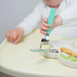 Couverts plats et adaptés à la préhension des plus jeunes, ils permettent de débuter l’apprentissage des couverts en toute confiance !